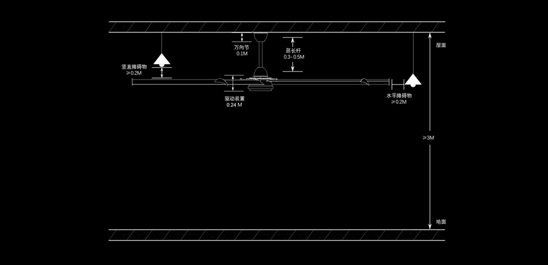 WYDS-A型超大型節能風扇,最大直徑可達7.32米的巨大吊扇!采用空氣動力學原理和先進工藝制造的流線型扇葉,僅需采用1.5KW就可以驅動大量的空氣,產生超大面積的自然微風系統,起到通風和降溫的雙重功能。比起傳統的暖通空調和小型的高速風機,它有無可比擬的應用優勢,堪稱高大空間通風降溫的完美解決方案。覆蓋面積可達1200m2.