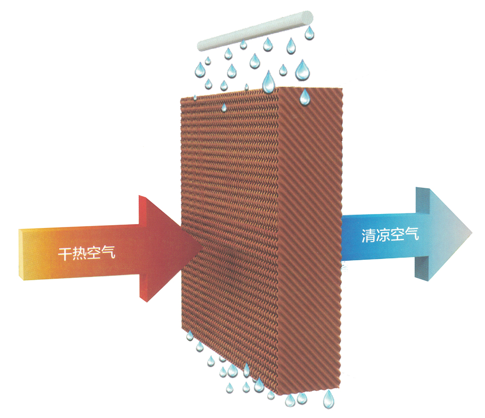“科瑞萊”蒸發式冷氣機的核心降溫部件是“高效蒸發式濕簾”——純天然多層波紋植物纖維疊合物。根據“水蒸發吸收熱量,蒸發面積影響蒸發效率”這一自然物理現象,通過風機往室內送風,室外的新鮮空氣流經浸水的濕簾后空氣與水份充分接觸同時吸收空氣中的顯熱,從而達到降溫、換氣、除塵、增加室內空氣含氧量的目的,特別適用于高溫車間及人群密集的工作場所。